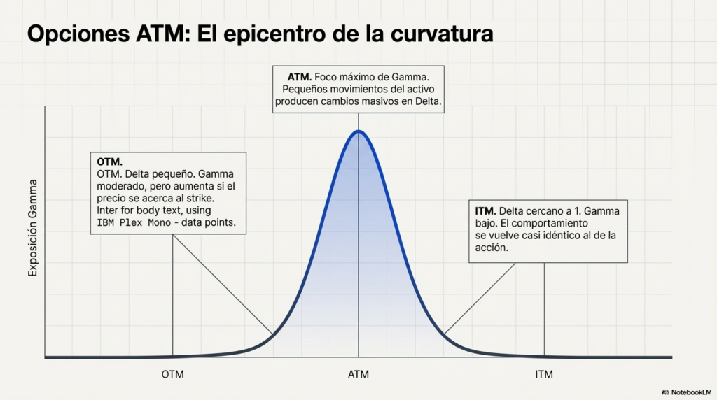 Por eso las opciones at-the-money concentran la mayor parte del gamma del mercado.