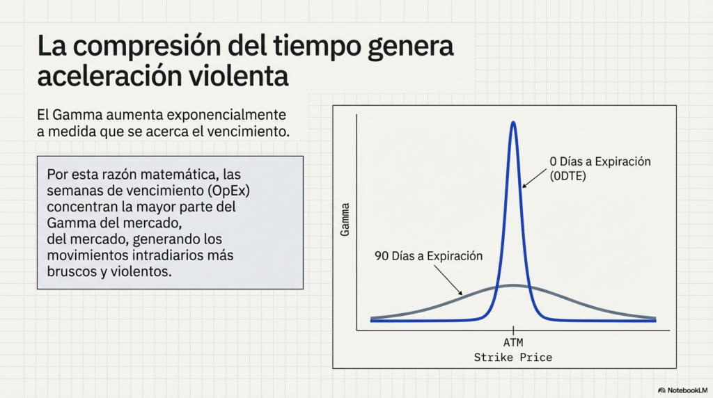 Opciones con pocos días a expiración concentran gran parte del gamma del mercado.