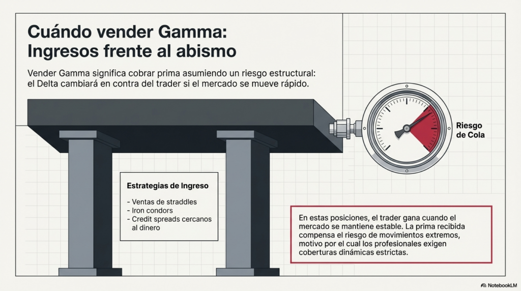 Por eso muchas estrategias de ingresos en opciones implican vender gamma.