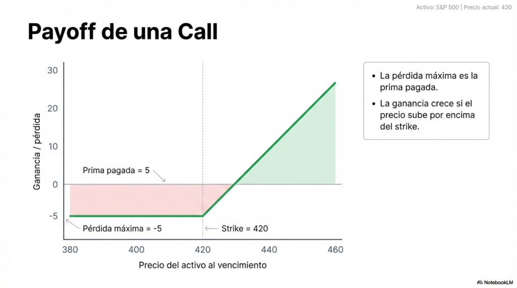 Un call es una opción que te da el derecho a comprar un activo a un precio determinado.