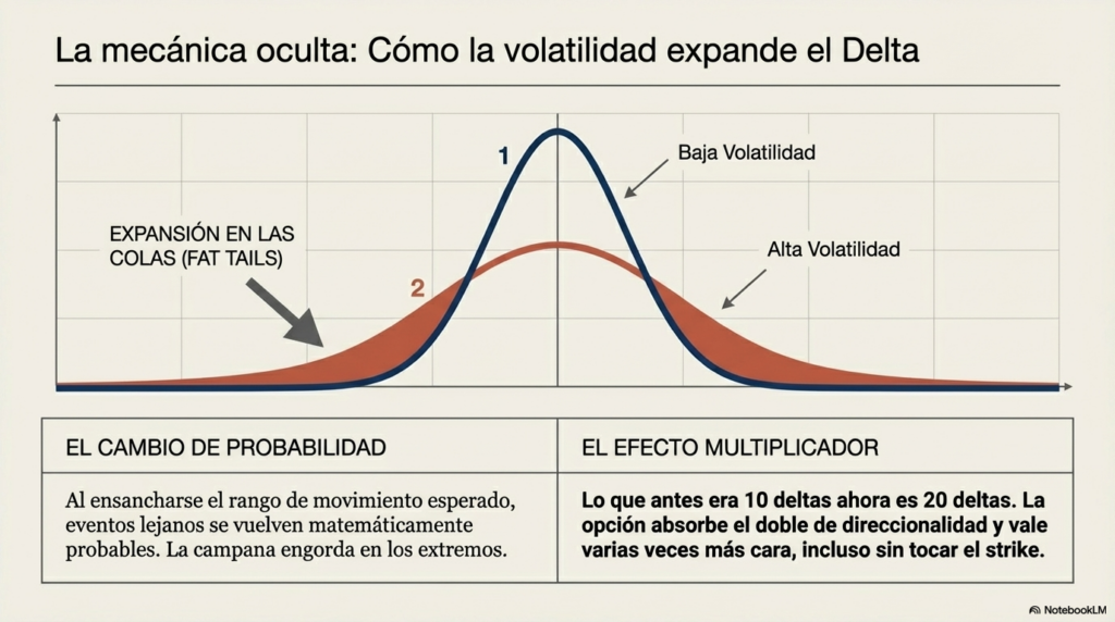 Cuando la volatilidad sube, las opciones se encarecen. Los traders están dispuestos a pagar más por protección.