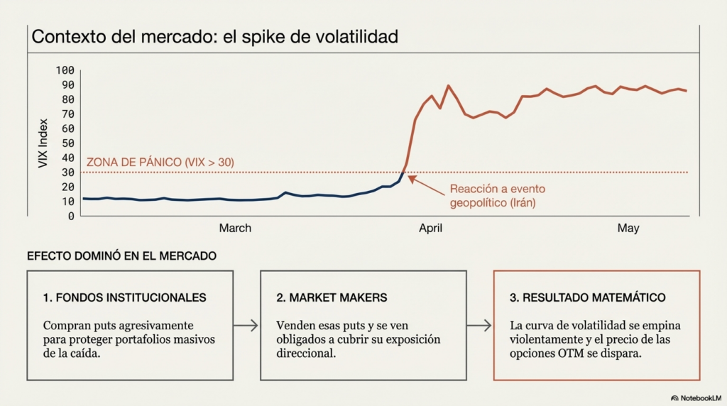 El mercado comenzó a caer y el VIX superó los 30 puntos. En ese entorno la demanda de protección aumentó de forma agresiva.