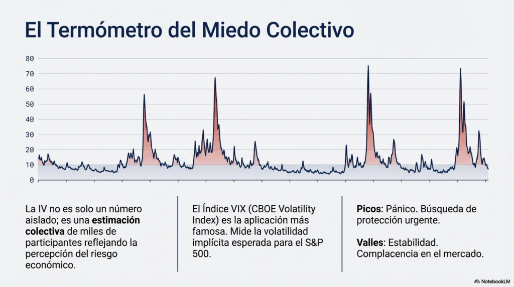 La volatilidad implícita refleja una estimación colectiva del mercado.
